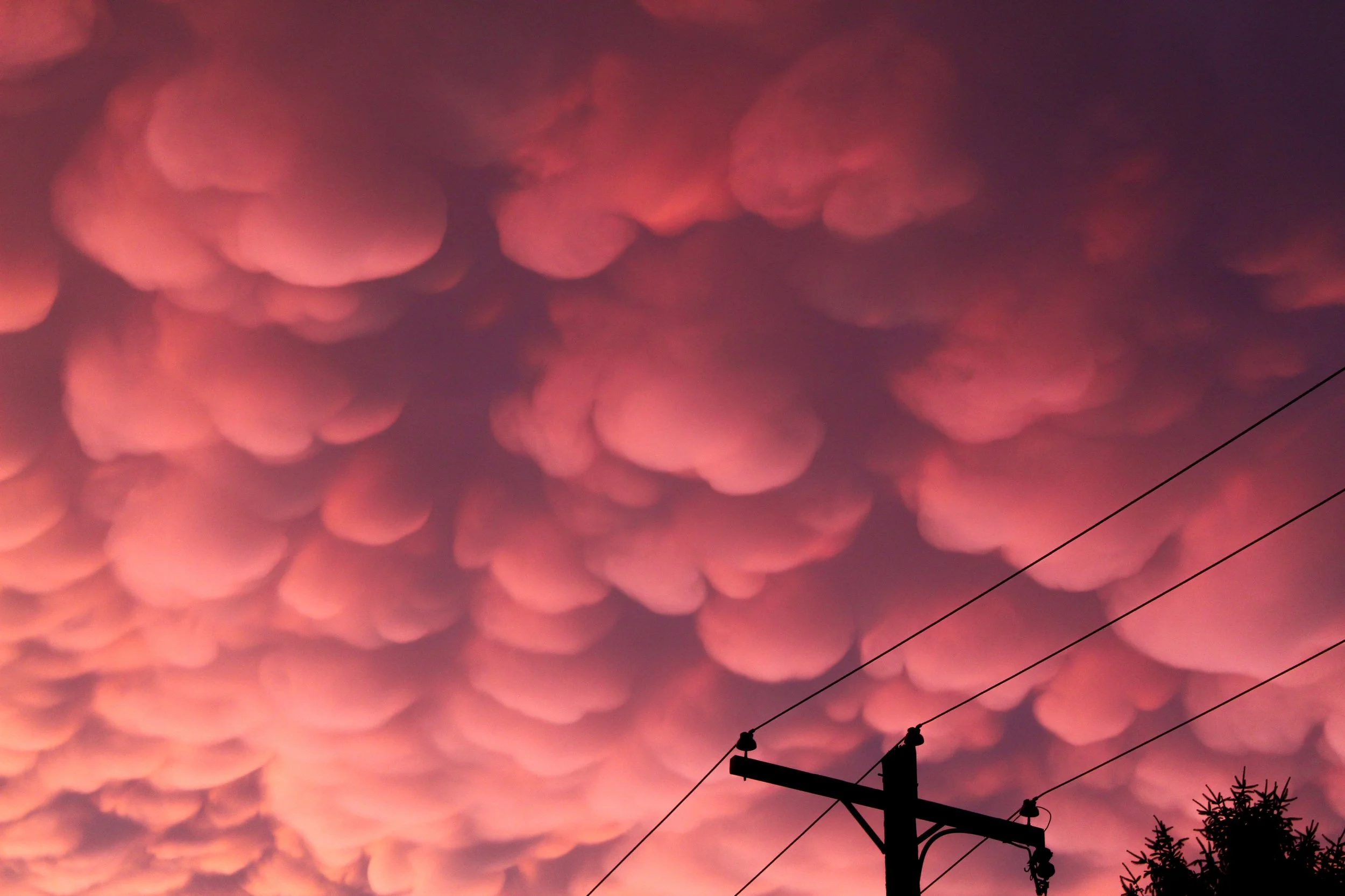 This photo is part of a series exploring the sky as a canvas for color, texture, and fleeting emotion. Captured during a rare sunset, the mammatus clouds create a surreal, dreamlike atmosphere—soft yet powerful. Each image in the set highlights how nature can shift from stillness to drama in a moment, inviting the viewer to pause and look up.