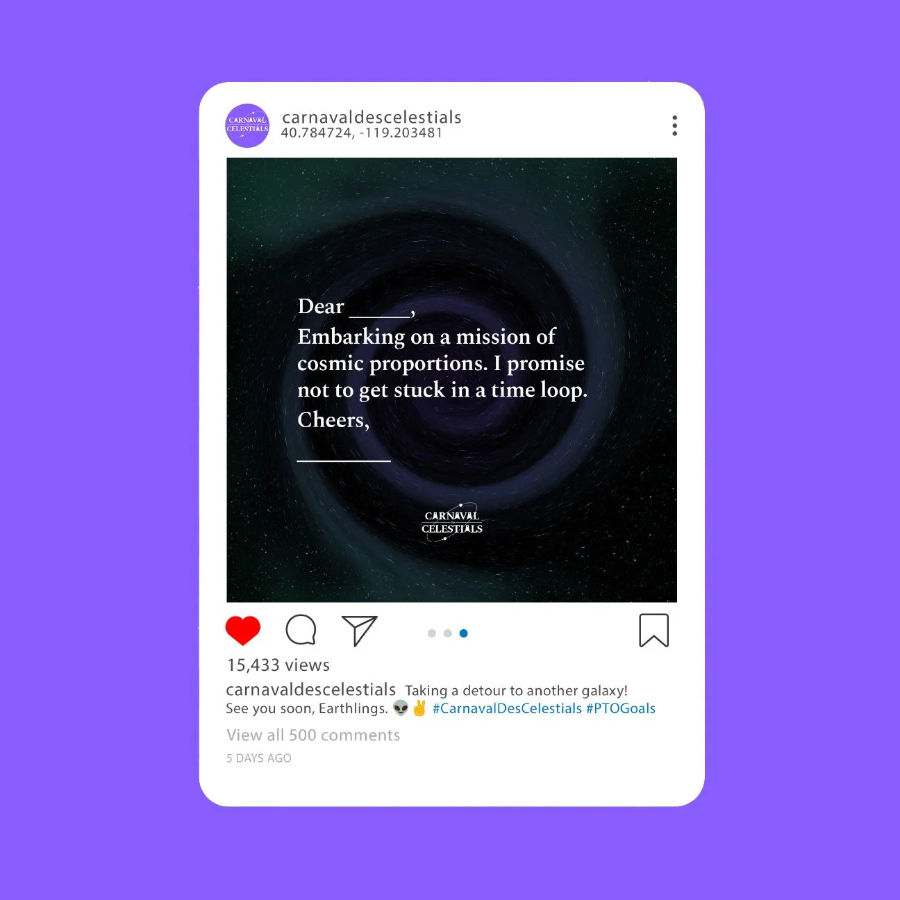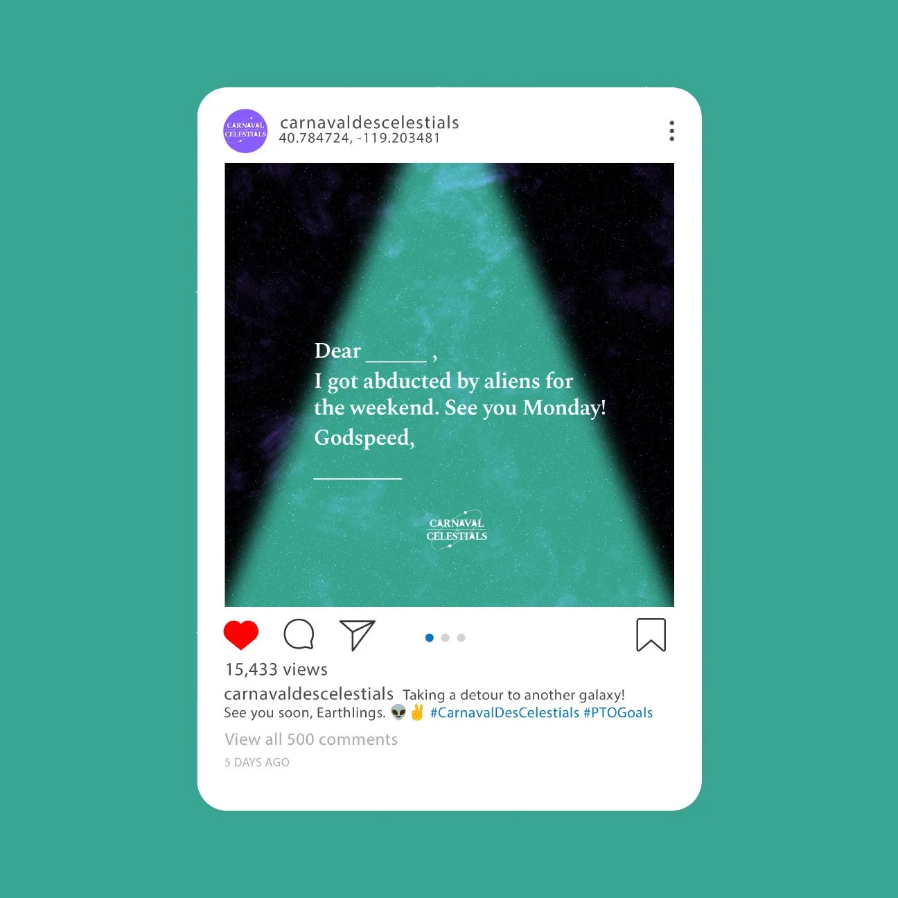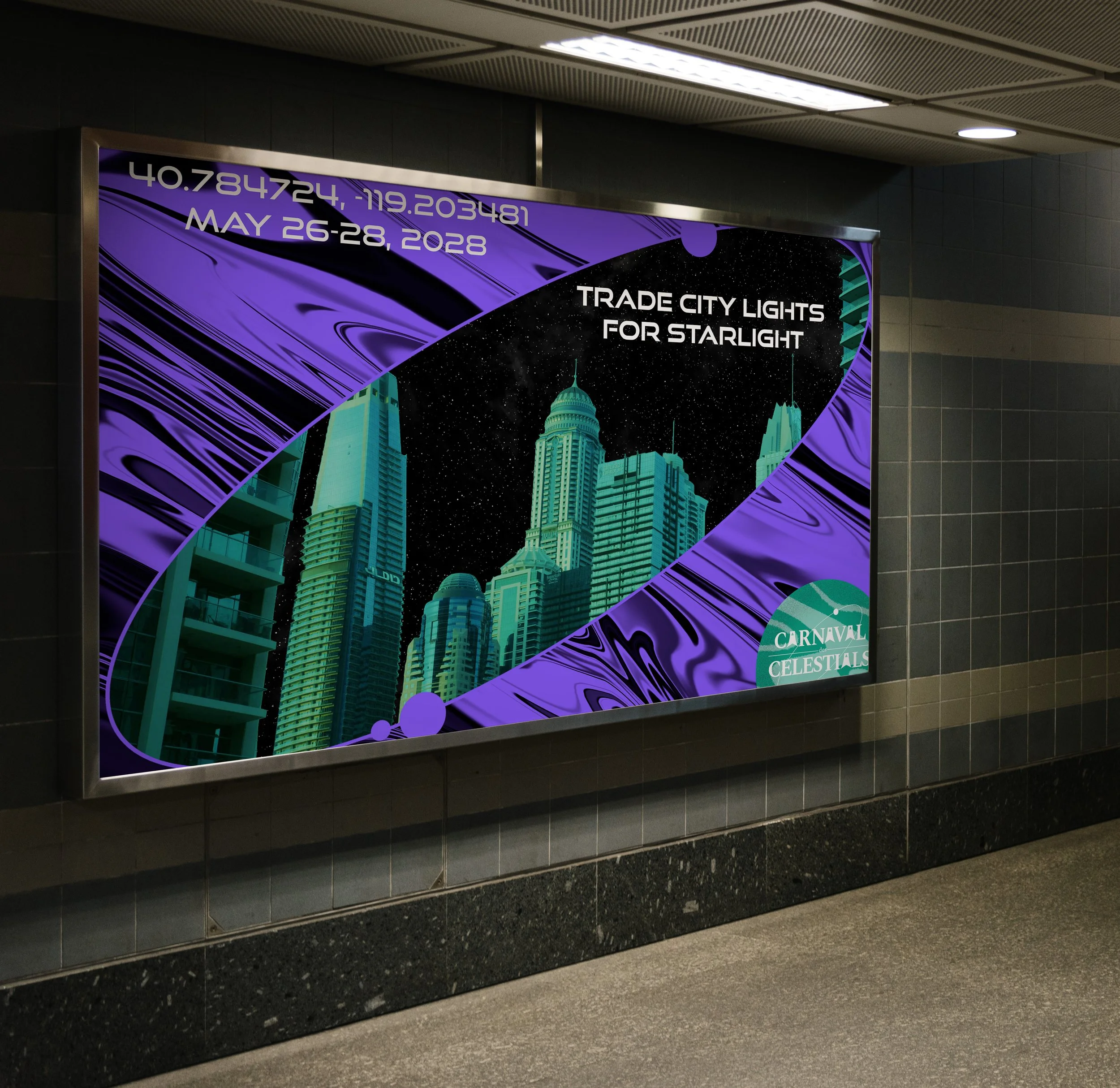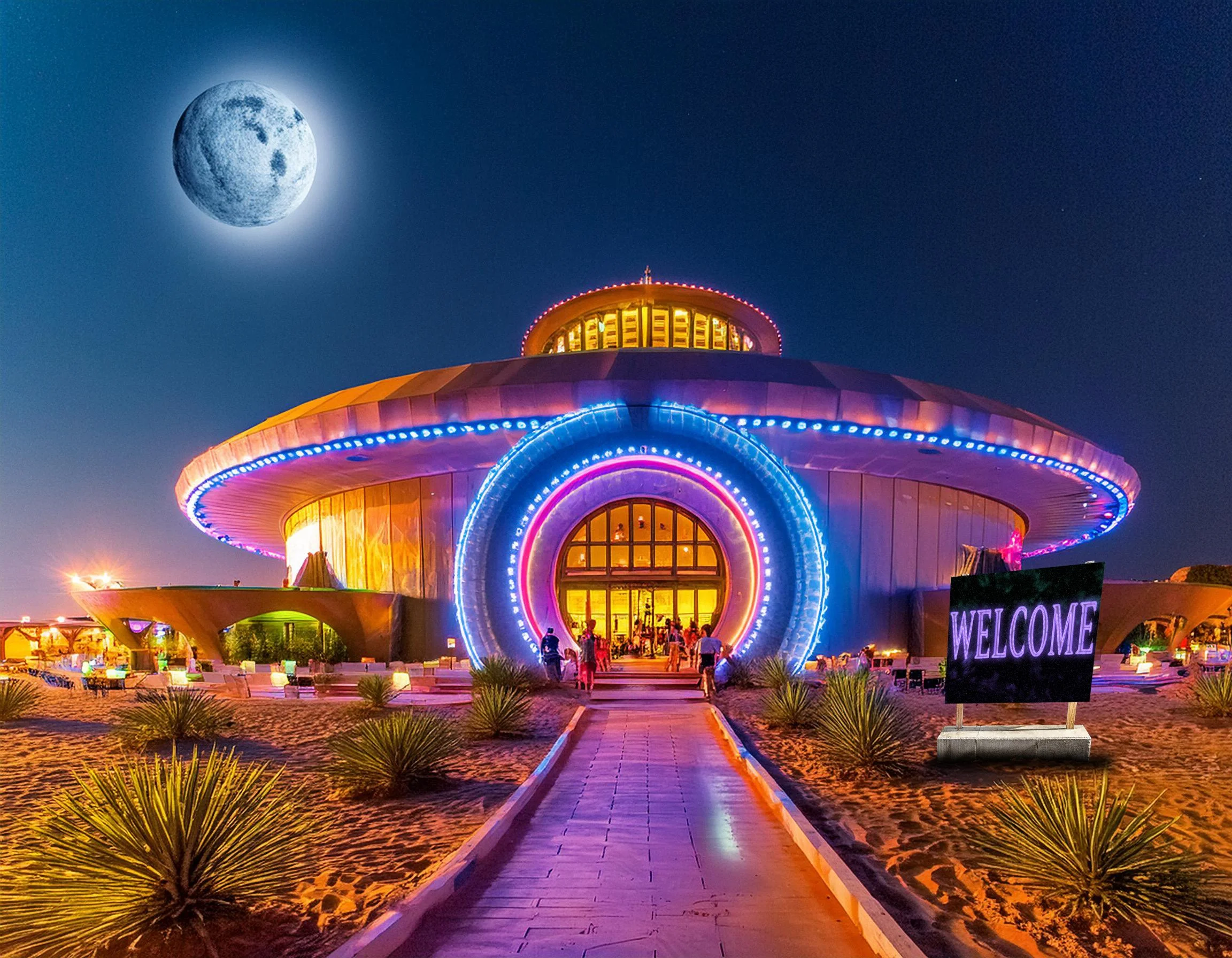 Welcome to Carnaval des Celestials, a festival where music, art, and sci-fi communities come together to celebrate and express themselves in the desert. This event combines art, technology, and music, giving artists a chance to showcase their talents. The festival features bright colors of green and purple and has an outdoor area filled with photo spots, food, and music. Attendees can enjoy a dance around a large UFO and a stunning laser light show. Carnaval des Celestials focuses on creativity and innovation while ensuring safety. The festival promises a secure and unforgettable experience, encouraging connections and self-expression in a fun, intergalactic celebration.