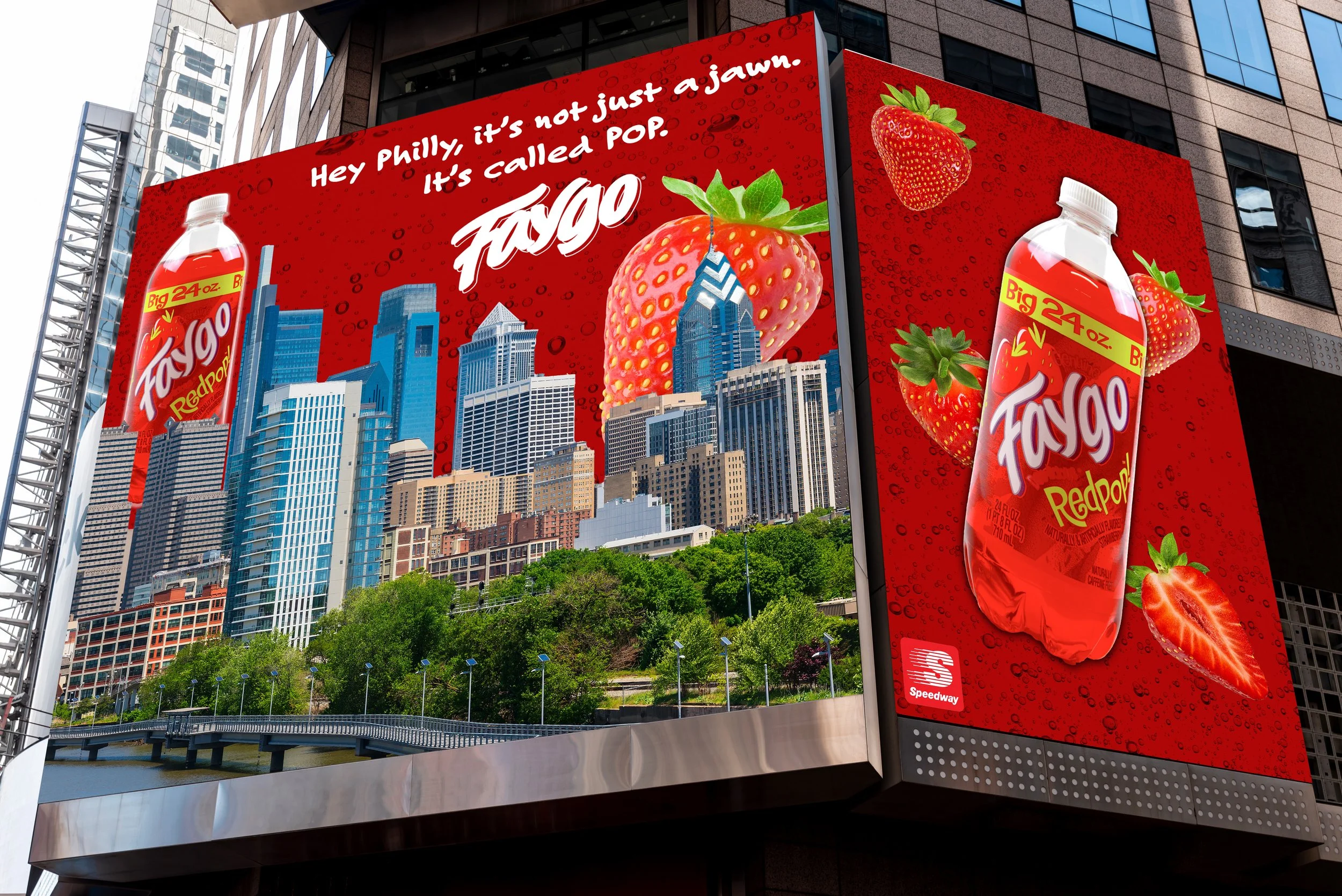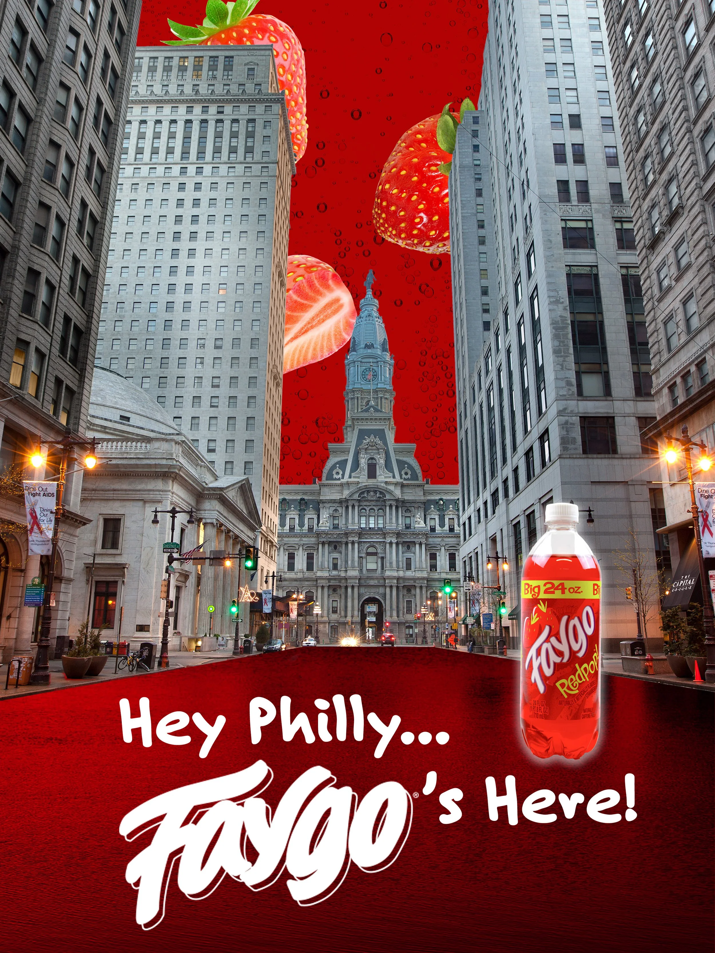 This regional ad campaign is all about bringing Faygo soda to East Coast cities in a lively way! We’re using bold visuals and playful, local language to capture attention. Imagine vibrant photo composites of famous skylines, oversized fruits, and catchy slang that really resonates with each city. You’ll see our ads on billboards, taxis, and website banners, all bursting with color and a local flair. It’s a joyful way to reconnect folks with Faygo and make some memorable moments!
